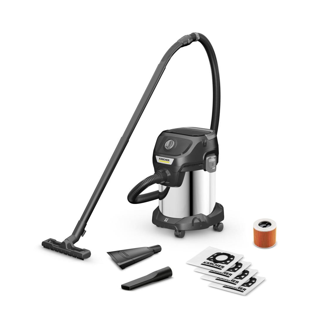 Kärcher KWD 3 S V-17/4/20. Maximum input power: 1000 W. Type: Drum vacuum, Cleaning type: Dry&wet, Dust container type: Dust bag, Dust capacity: 17 L. Dirt separating method: Filtering, Noise level: 74 dB. Product colour: Black, Silver