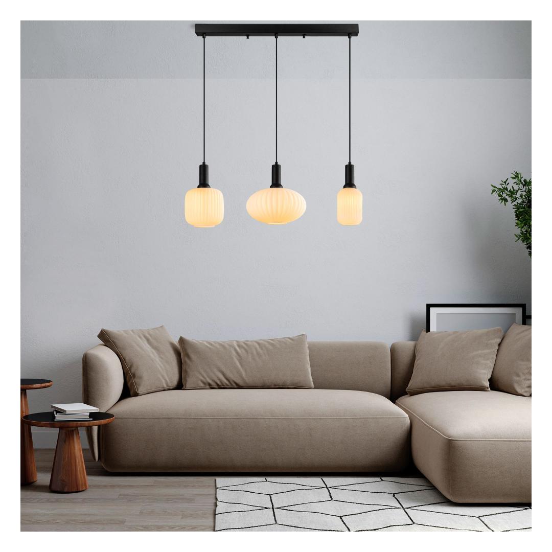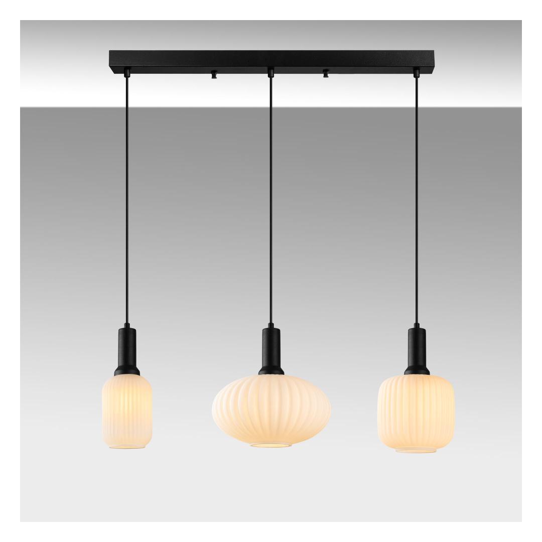 Muuda oma eluruum meie kauni metall- ja klaaskristalllühtriga. See erakordne ese lisab igasse ruumi elegantsi ja rafineeritust, luues sooja ja kutsuva atmosfääri, mida sina ja sinu külalised armastate.Elegantne disainSelle lühtri sujuv metallkorpus ja klaaskatted teevad sellest tõeliselt silmapaistva lisandi sinu kodu sisustusse. Must värv lisab modernset puudutust, samas kui kolm erinevat katte suurust loovad dünaamilise ja ainulaadse välimuse, mis jätab mulje kõigile, kes seda näevad.Ideaalne suurusMõõtmetega 87 x 30 x 130 cm on see lühter ideaalne suurus, et riputada oma elutuppa, söögituppa või magamistuppa. Kolm erinevat katte suurust lisavad teosele sügavust ja mõõtmeid, muutes selle igas ruumis keskpunktiks.Lihtne paigaldadaSee lühter on lihtne paigaldada ja sellel on alusplaat, mille mõõtmed on 78 x 6 x 4 cm. Sokli tüüp on 3 x E 27 Max 40 W ning lühter on ühilduv 220-240 V toiteallikatega. Palun pange tähele, et pirn ei ole kaasas.Ärge jätke kasutamata võimalust tõsta oma kodu sisustust meie kauni metall- ja klaaskristalllühtriga. Tellige oma täna ja kogege, millist erinevust see teie eluruumis võib teha. Värv: Black