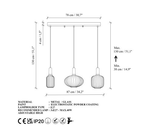 Socket Type: 3 x E 27 Max 40 W