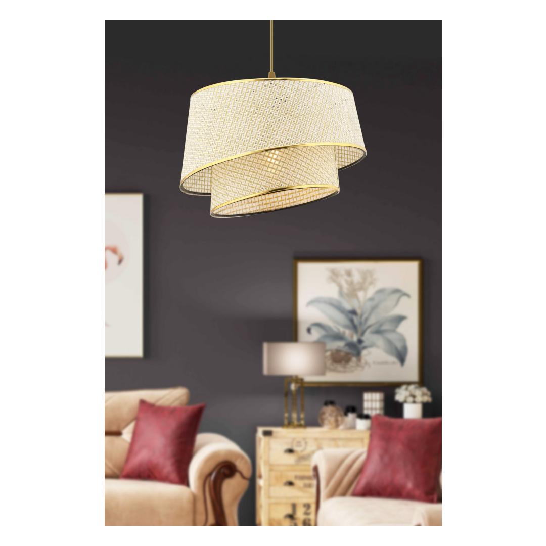 Muuda oma eluruum luksuslikuks oaasiks meie uimastava lühtriga. Selle lühtri elegantne disain ja keerulised detailid lummavad igaüht, kes tuppa siseneb. Kreemjate ja kuldsete värvide kombinatsioon lisab igale sisustusele rafineeritust ja glamuuri. Valgustage oma kodu elegantseltLisage oma koju glamuuri selle peene lühtriga. Metallist korpus ja riidest kork loovad kauni kontrasti, mis muudab selle igas ruumis tähelepanu keskpunktiks. Olenemata sellest, kas riputate selle oma söögituppa, elutuppa või magamistuppa, see lühtri tõstab koheselt meeleolu ja loob sooja ja kutsuva atmosfääri. Looma väljapaistev eseTehke avaldus selle lühtriga, mis õhkab elegantsi ja stiili. Keerukas disain ja tähelepanu detailidele teevad sellest kunstiteose, mis avaldab külalistele muljet ja jätab nad aukartusse. Las see lühtri on teie kodu keskne osa ja näitab teie laitmatut maitset sisekujunduses. Tehnilised üksikasjad:Metallist korpus koos kangakattegaMütsi suurus: 32 x 32 cmKorki kõrgus: 20 cmKogukõrgus: 65 cmCE-sertifikaatPistikupesa tüüp: E 27 Max 45 - 60 WVärv: kreemjas ja kuldne Värv: Cream Gold
