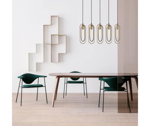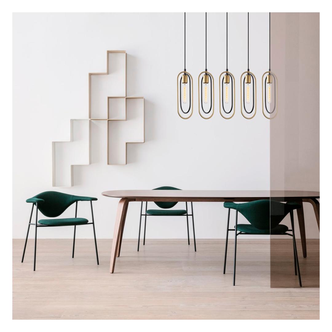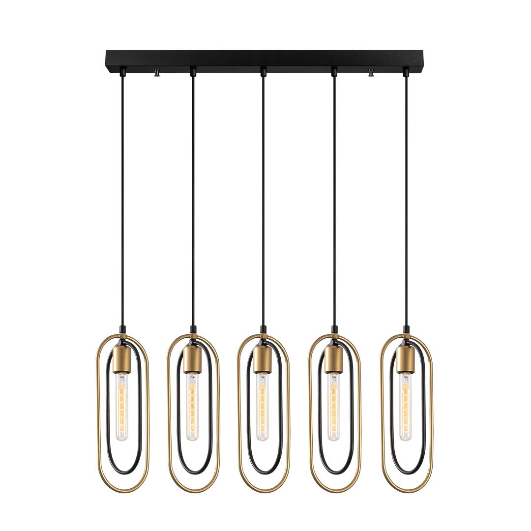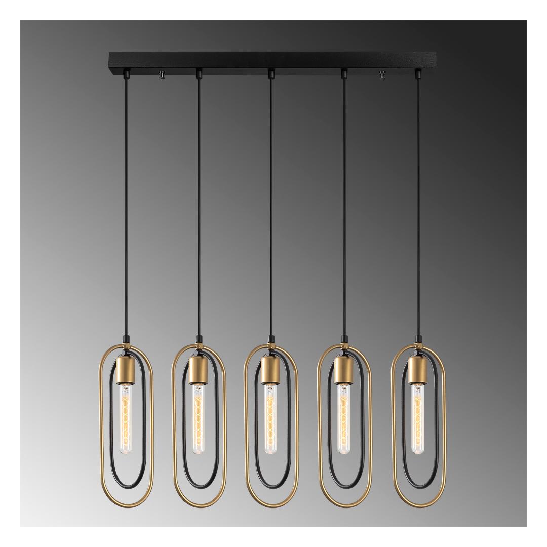 The chandelier features a sturdy metal body, ensuring durability and longevity. Its sleek black and gold color combination adds a touch of sophistication to any interior. The captivating design is perfect for those who appreciate contemporary aesthetics with a touch of Scandinavian charm.