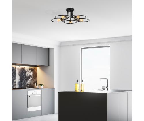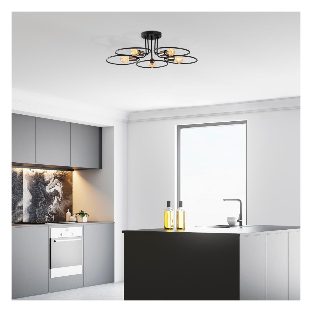 Imagine the warm glow of the soft, ambient lighting as it cascades down from the five E27 sockets. The black iron body adds a touch of industrial charm, while the solid black color exudes elegance and class. This chandelier is sure to create a captivating atmosphere that will leave your guests in awe.