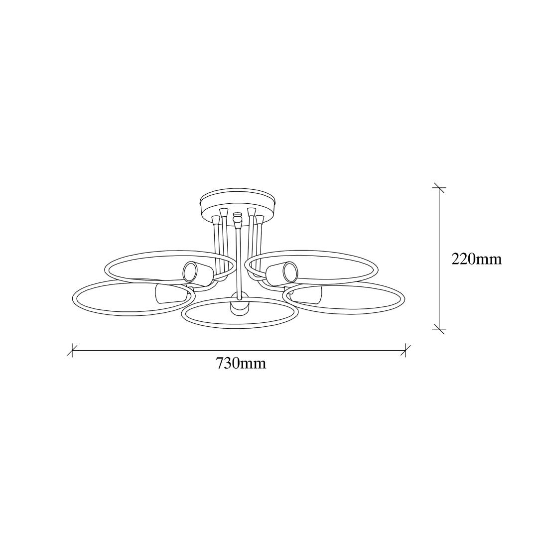 Measuring 73 x 73 cm, with a height of 22 cm, this chandelier is the ideal size for most rooms. The base plate, with a diameter of 12 cm and a height of 3 cm, ensures stability and durability. Whether you hang it in your living room, dining area, or bedroom, this chandelier will effortlessly enhance the ambiance of any space.