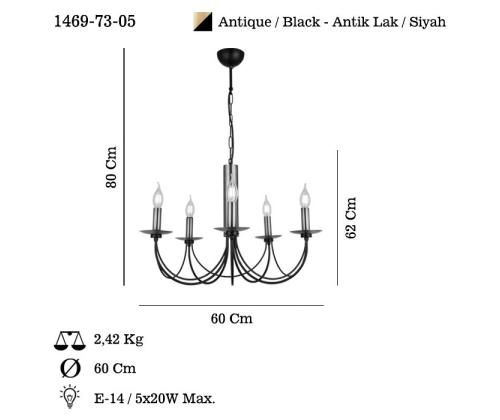 Socket Type: 5 x E 14 Max 40 W