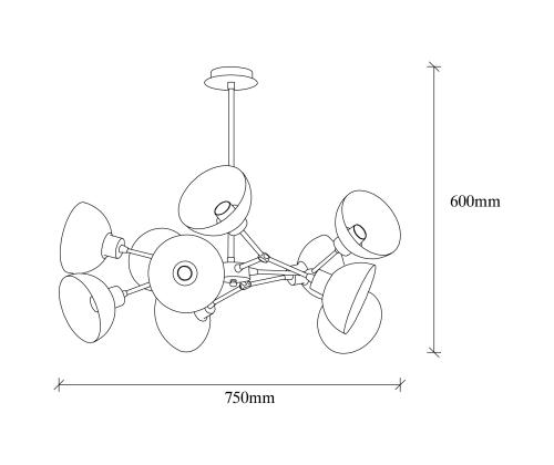 Featuring 10 E27 sockets, this chandelier provides ample lighting for your space. Each socket can accommodate a maximum of 40W, ensuring a bright and well-lit environment. The chandelier's cap, with a diameter of 15 cm and a height of 7 cm, adds a unique touch to its overall design, while the base plate, with a diameter of 10 cm and a height of 3 cm, ensures stability and durability.
