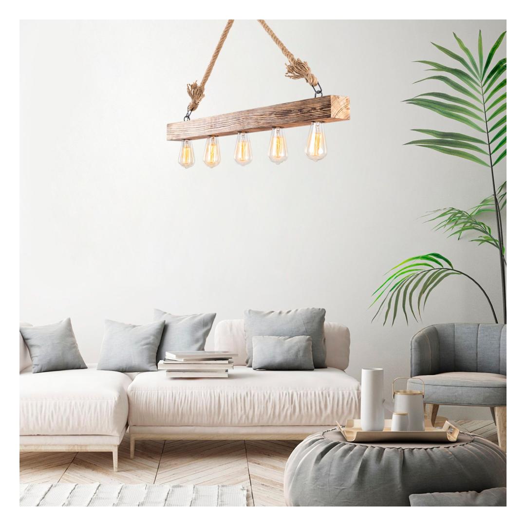 Transformeerige oma ruumi suurepärase puidust lühtrigaTõsta oma eluruumi atmosfääri meie uimastava puidust lühtriga. See ülima täpsusega valmistatud lühtar õhkab elegantsi ja võlu, muutes selle ideaalseks täienduseks igasse ruumi. Selle ainulaadne puidust korpus lisab soojust ja rafineeritust, luues lummava fookuspunkti, mis jätab teie külalised imestama.Vabastage looduse iluSelle lühtri puidust korpus toob looduse ilu siseruumidesse, luues rahulikku ja kutsuvat atmosfääri. Puidu looduslik tera ja tekstuur lisavad maalähedast võlu, mistõttu sobib see ideaalselt nii moodsasse kui ka traditsioonilisse interjööri. Olenemata sellest, kas paigutate selle oma elutuppa, söögituppa või magamistuppa, suurendab see lühtri vaevata teie ruumi esteetilist atraktiivsust. Valgustage oma maailmaViie e27 pistikupesa abil pakub see lühtri rohkelt valgustust, et valgustada iga ruumi. Pistikupesad mahutavad pirnid maksimaalse võimsusega 40 W, mis võimaldab teil luua täiusliku atmosfääri iga sündmuse jaoks. Ükskõik, kas eelistate sooja ja hubast valgustust või heledat ja elavat valgustust, see lühtri on teie jaoks sobiv. Tehnilised üksikasjad:Toote tüüp: Toode on valmistatud nii, et see ei sisalda ainult valgustit, vaid ka valgustit, mis on mõeldud kasutamiseks: .Suurus: 100 x 7 cmKõrgus: 53 cmKaabli pikkus: 40 cmPistikupesa tüüp: E27 Max 40WIP-kood: IP20Pirnid ei kuulu komplektiAlusplaadi läbimõõt: 10 cmPlaadi kõrgus: 3 cmVärv: Puidust värv(id)Kontseptsioon: Värviline, moodne - uudne, maalähedane.Parandage oma ruumi juba tänaÄrge jätke kasutamata võimalust muuta oma ruum elegantsi ja stiili paradiisiks. Tellige meie puidust lühtri kohe ja kogege seda ilu ja võlu, mida see teie koju toob. Valgustage oma maailma selle suurepärase kunstiteosega. Värv: Wooden