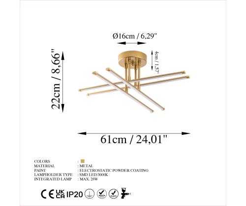 Transformeeri oma ruum elegantsi ja glamuurigaTutvustame teile meie peen lühtrit, mis on meistriteos, mis tõstab koheselt mis tahes ruumi atmosfääri. See lühtri on oma lummava disaini ja luksusliku kuldse värviga keerukuse ja stiilsuse kehastus. Vabastage metalli võimsusTugevast metallist korpusest valmistatud lühtrile on omane vastupidavus ja tugevus. Metallist alusplaat tagab stabiilsuse, lisades samas kogu disainile modernsust.Valgustage oma maailma61 cm laiuse ja 22 cm kõrgusega lühtri valgustus on piisav, et valgustada mis tahes ruumi. Smd-led lambipesa tüüp ja led 28w pesa tüüp tagavad kauakestva ja energiasäästliku valgustuse, mis võimaldab teil luua sooja ja kutsuva atmosfääri. Täiuslik disain, võrratu iluSelle lühtri keerulised detailid ja laitmatu käsitöö teevad sellest tõelise kunstiteose. Selle elegantne kuldne värvus lisab teie ruumile külluslikkust ja suursugusust, muutes selle tähelepanu keskpunktiks. Tehnilised üksikasjad:Metallist korpus tagab vastupidavuse ja tugevuseMetallist alusplaat stabiilsuse ja kaasaegse disaini tagamiseksLaius: 61 cm, kõrgus: 22 cm, sügavus: 61 cmAlusplaadi läbimõõt: 16 cm, alusplaadi kõrgus: 4 cmIP 20 klassifikatsioon ohutuks kasutamiseks siseruumidesLambipesa tüüp: SMD LedPesa tüüp: LED 28WVärv: kuldneKoge luksuse iluHellitage end luksuse ilu meie uimastava lühtriga. Olgu see teie elutuppa, söögituppa või magamistuppa, see lühtri muudab teie ruumi elegantsi ja glamuuri paradiisiks. Ärge jätke kasutamata seda võimalust, et lisada oma koju elegantsi. Telli kohe ja lase lummusel alata! Värv: Gold