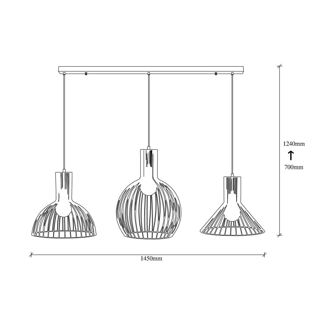Crafted with a sturdy iron body, this chandelier is built to last and withstand the test of time. The three different cap sizes add dimension and visual interest, while the base plate ensures stability and durability. The black color adds a touch of sophistication and elegance, making it a versatile piece that will complement any decor style.