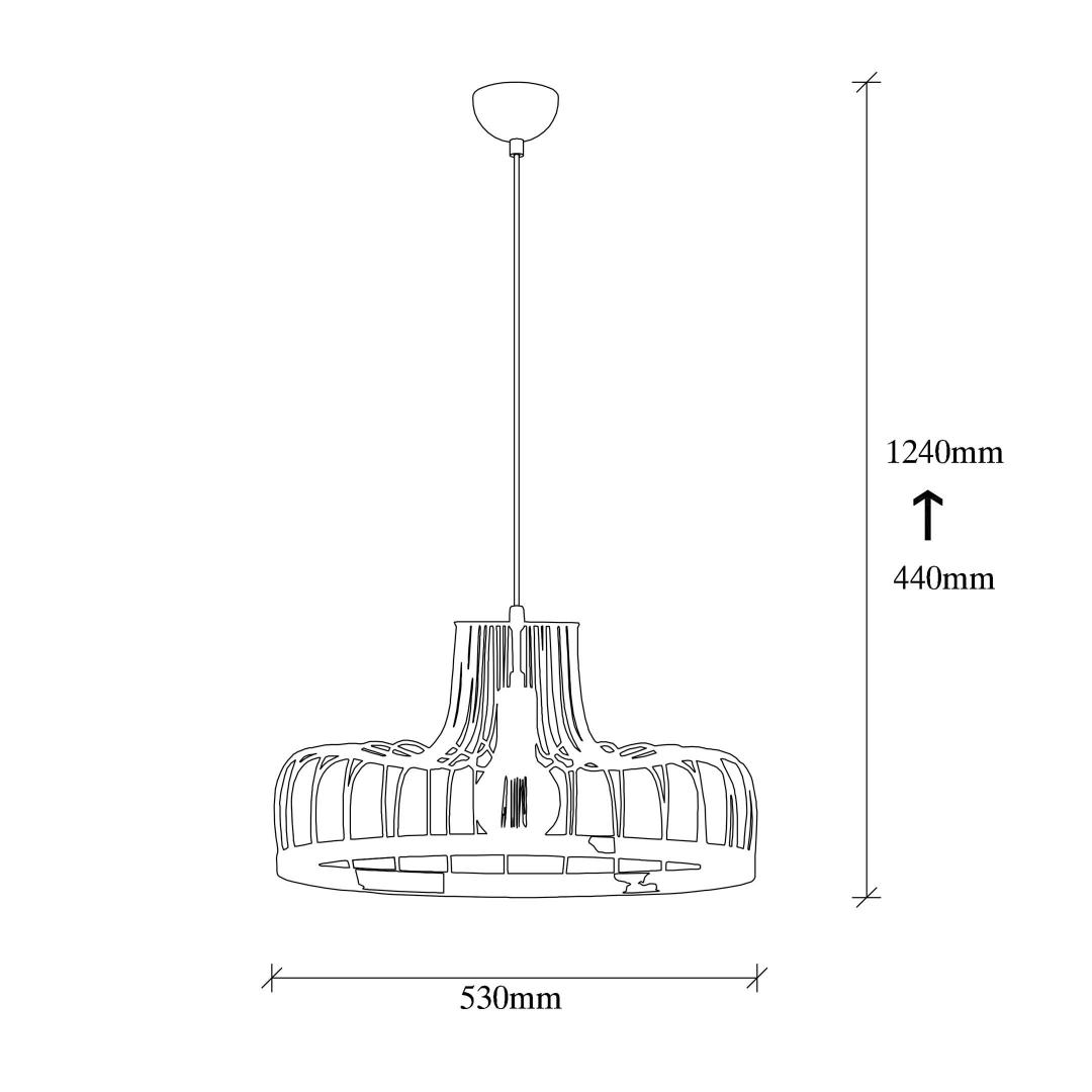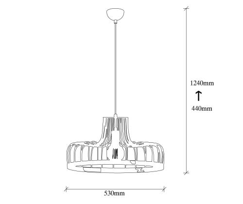 With a diameter of 53 cm and a height of 124 cm, this chandelier is the ideal size to make a statement in any space. The black and copper color combination adds a touch of luxury and refinement, effortlessly enhancing the overall ambiance of your room. The adjustable height feature allows you to customize the chandelier to perfectly fit your space and desired aesthetic.