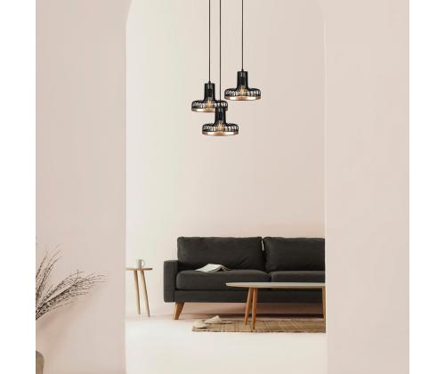 Featuring a solid black metal body with copper accents, this chandelier effortlessly combines modernity with a touch of industrial charm. Its unique design is sure to catch the eye of anyone who enters the room, making it a perfect centerpiece for your living room, dining area, or bedroom.