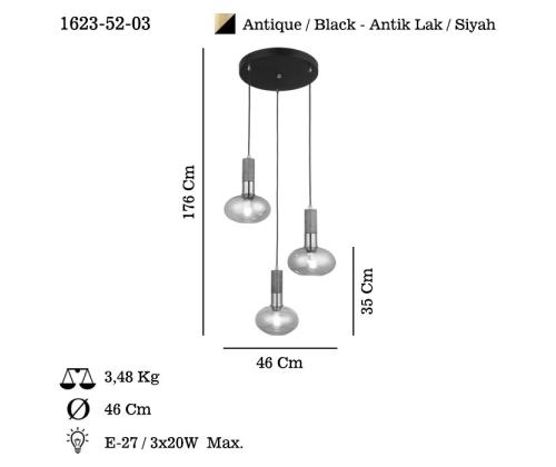 Socket Type: 3 x E 27 Max 40 W