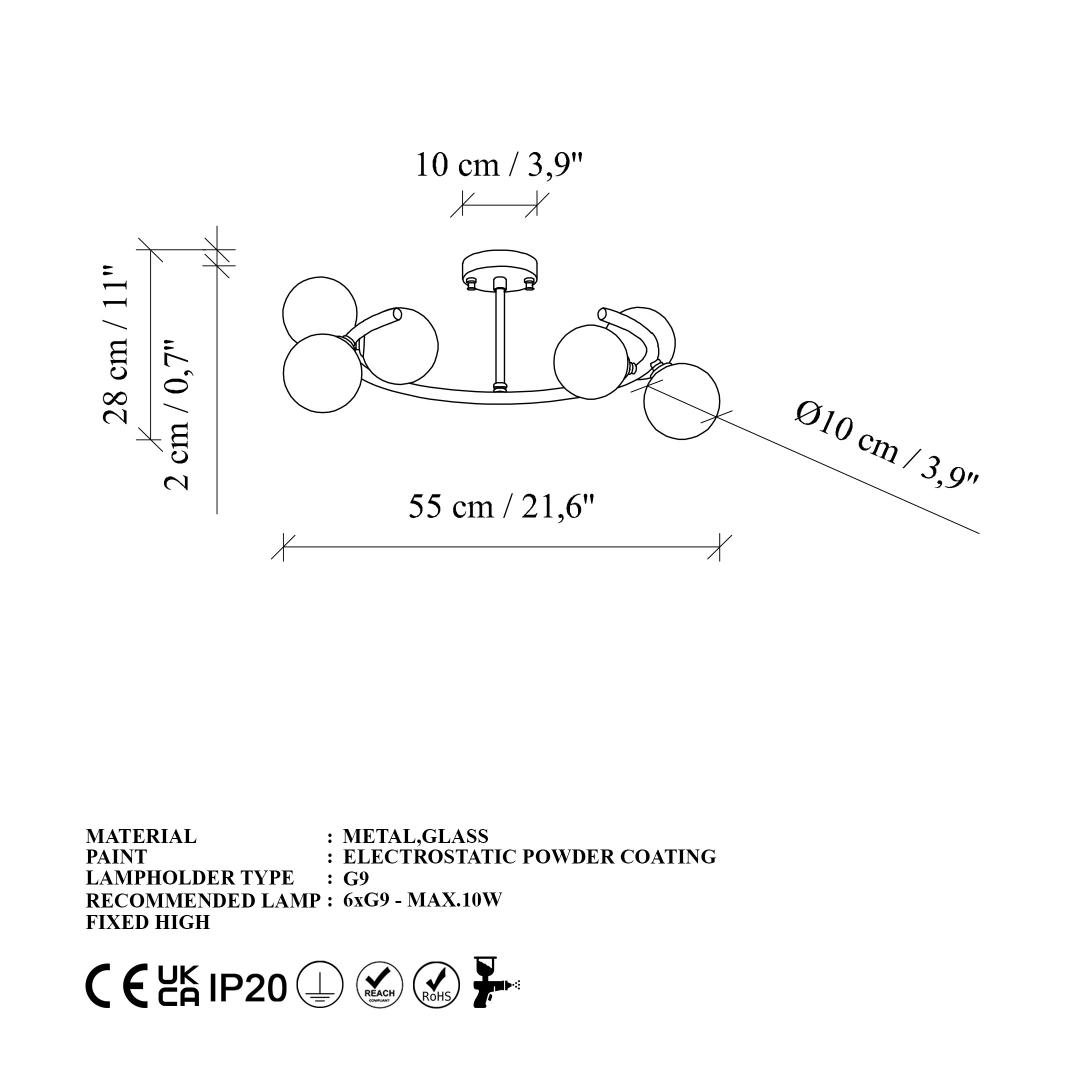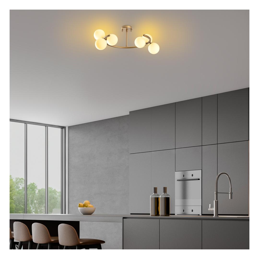Muuda oma eluruum luksuslikuks pelgupaigaks meie kauni kuldse lühtri abil. See hämmastav ese lisab igasse ruumi elegantsi ja rafineeritust, luues sooja ja kutsuva atmosfääri, mida sina ja sinu külalised armastate.Tõsta oma kodu sisustus uuele tasemeleSelle lühtri keeruline metallkorpus on loodud muljet avaldama, muutes selle ideaalseks keskpunktiks sinu söögitoas, elutoas või magamistoas. Kuldne viimistlus lisab sära ja luksust, tõstes sinu kodu sisustuse uutesse kõrgustesse.Loo soe atmosfäärKuuenda G9 pesaga pakub see lühter piisavalt valgust, et valgustada sinu ruumi. Lisa oma lemmikpirnid, et kohandada atmosfääri ja luua ideaalne valgustus igaks juhuks. Olgu sul õhtusöögipidamine või rahulik õhtu kodus, see lühter loob kauni meeleolu.Tehnilised andmed:Suurus: 55 x 50 x 30 cmVarju diameeter: 10 cmPõhja plaat: Ø10 h:2 cmPesa tüüp: 6 x G 9 Max 8 WPirn ei ole kaasas220-240 VIP kood: IP20Värv: KuldÄra jäta kasutamata võimalust täiustada oma kodu selle hämmastava kuldse lühtriga. Hellita end luksuse puudutusega ja tee avaldus stiilis. Tellige oma täna ja kogege, millist erinevust see teie eluruumis võib teha. Värv: Gold