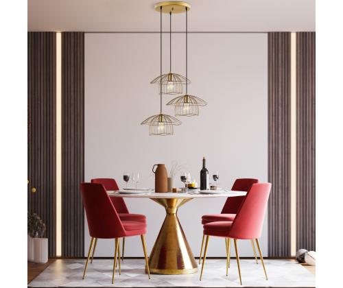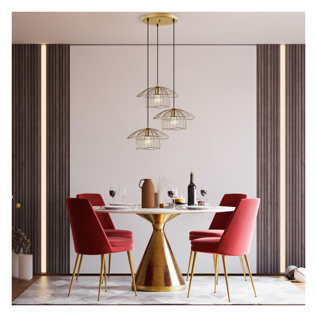 Muuda oma eluruum luksuslikuks ja elegantseks pühamuks meie hämmastava kuldse lühtri abil. See erakordne ese lisab igasse ruumi glamuurset ja rafineeritud puudutust, luues sooja ja kutsuva atmosfääri, mida sina ja sinu külalised armastate.Valgusta oma kodu stiilseltLühtri keeruline metallkorpus on kaunilt valmistatud, kiirgades luksuse ja suursugususe tunnet. Kuldne viimistlus lisab luksuse puudutuse, muutes selle ideaalseks silmapaistvaks elemendiks sinu kodus.Loo fookuspunkt igas ruumisSelle muljetavaldava suurusega 68 x 68 x 110 cm muutub see lühter koheselt igas ruumis fookuspunktiks. Olgu see siis elutoas, söögitoas või magamistoas, see lummab ja võlub kõiki, kes sinu koju astuvad.Tehnilised andmed:Metallkorpus kuldse viimistlusegaMetallkorkSuurus: 68 x 68 x 110 cmKorgi suurus: Ø35 h:16 cmAlusplaadi suurus: Ø40 h:3 cmPesatüüp: 3 x E 27 Max 40 WPirn ei ole kaasas220-240 VIP kood: IP20Ära jäta kasutamata võimalust tõsta oma kodu sisekujundust meie erakordse kuldse lühtriga. Tellige oma täna ja nautige luksuse ja elegantsi sooja kuma. Värv: Gold
