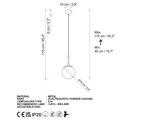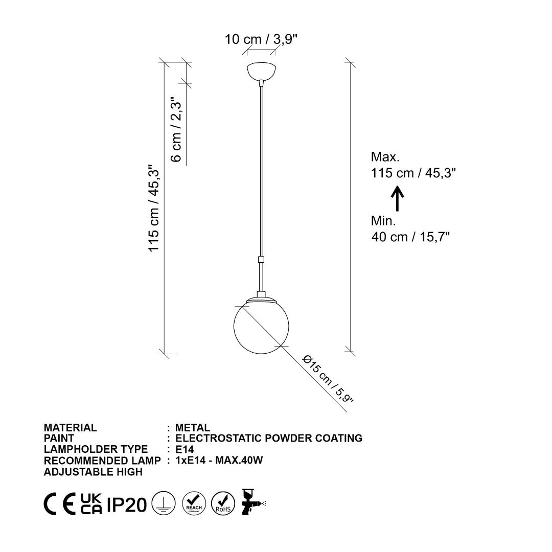 Socket Type: 1 x E 14 Max 40 W