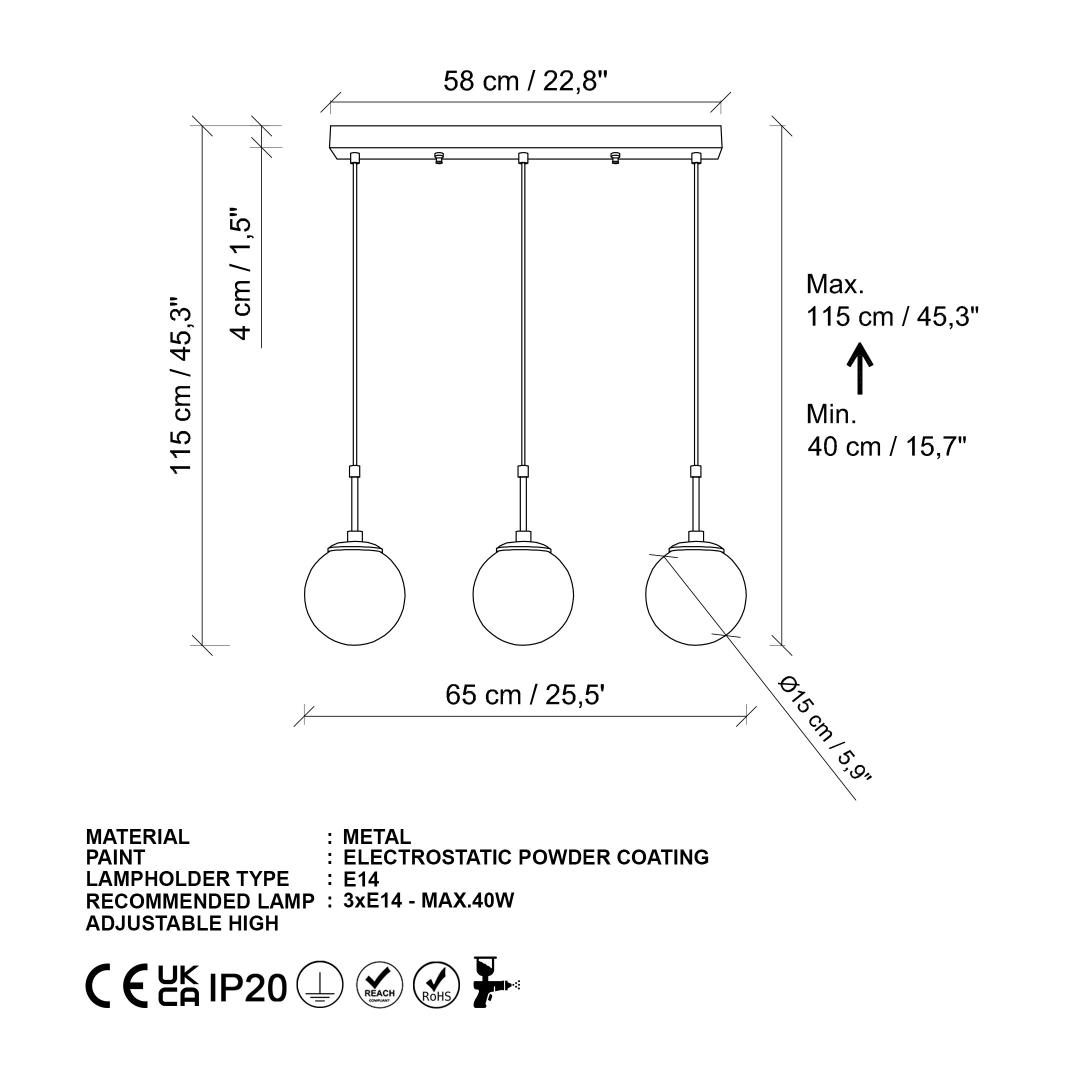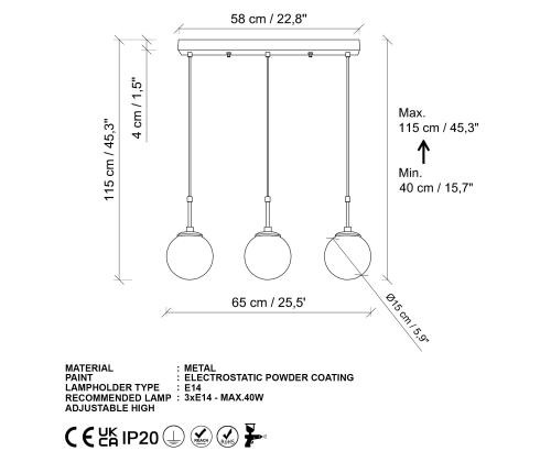 Socket Type: 3 x E 14 Max 40 W