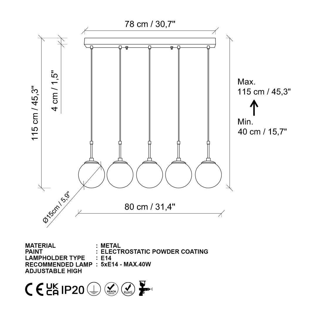 Socket Type: 5 x E 14 Max 40 W