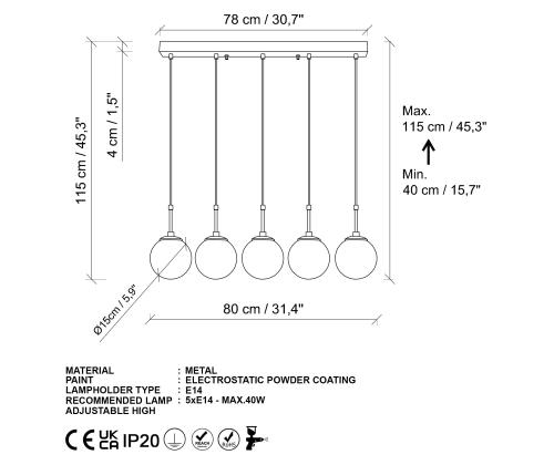 Socket Type: 5 x E 14 Max 40 W