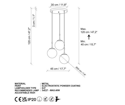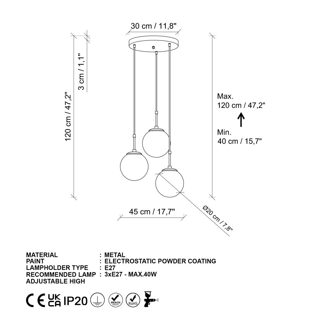 Socket Type: 3 x E 27 Max 40 W