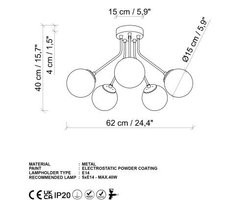 Muuda oma eluruum selle uimastava lühtri abil, mis õhkab elegantsi ja elegantsi. Kerge metallkorpus koos õrna klaasist korgiga loob igas ruumis lummava fookuspunkti. Valgustage oma kodu stiilseltLühtri läbimõõt on 62 cm ja korgi läbimõõt 15 cm, mistõttu sobib see ideaalselt söögituppa, elutuppa või esikusse. Kogukõrgus 40 cm lisab teie ruumile suurejoonelisust, samas kui reguleerimata kõrgus tagab turvalise paigalduse. Loo soe ja kutsuv atmosfäär5 e14 pistikupesaga lühtrile saab paigaldada kuni 40 W pirnid, mis võimaldab teil kohandada valgustust vastavalt teie meeleolule. Must värv lisab teie sisustusele kaasaegse tooni, samas kui ip20-klassifikatsioon tagab vastupidavuse ja ohutuse. Tehnilised üksikasjad:Materjal: Materjal: Metallkorpus koos klaasist korgigaLäbimõõt: 62 cmKaane läbimõõt: 15 cmKogukõrgus: 40 cmAlusplaadi suurus: Ø15 H:4 cmPistikupesa tüüp: E14 Max 40 WPirn ei kuulu komplektiPinge: 220-240 VIP-kood: IP20Värv: must Värv: Black
