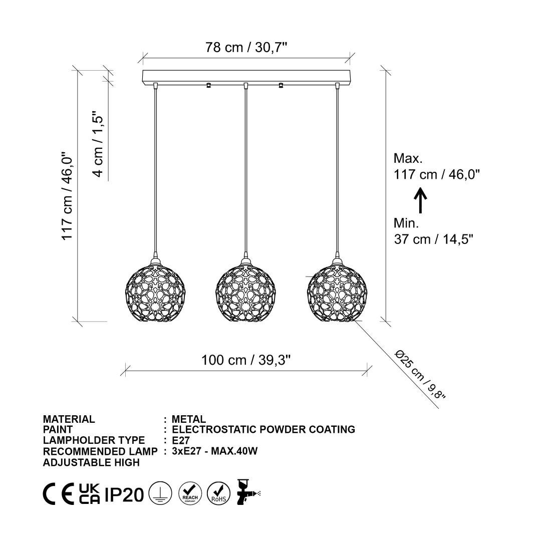 Socket Type: 3 x E 27 Max 40 W