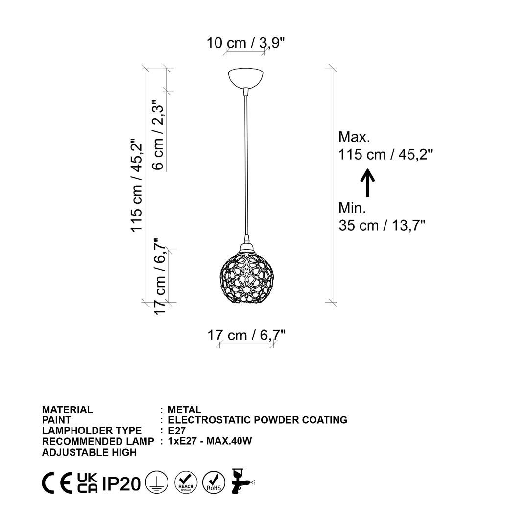 - Socket Type: 1 x E 27 Max 40 W