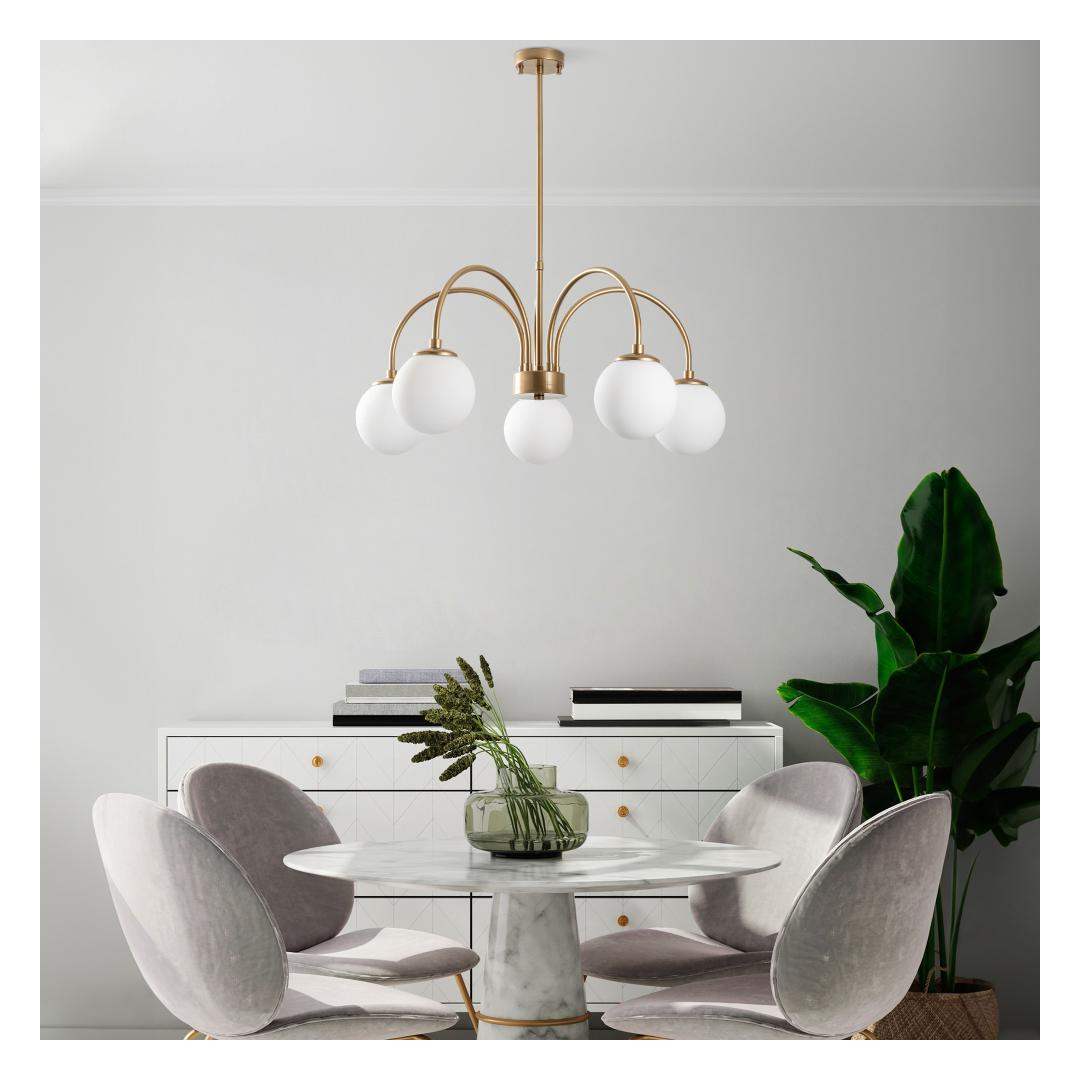 Muuda oma eluruum meie uimastava kuldse lühtriga. See peen tükk lisab elegantsust ja elegantsust igasse ruumi, luues sooja ja kutsuva atmosfääri, mis meeldib teile ja teie külalistele. Keerukas metallkorpus ja klaasist korpus loovad koos tõeliselt hingematva disaini, mis on teie kodu keskpunktiks. Tõstke oma kodu kaunistustKuldne lühtri on ideaalne väljapaistev ese teie kodu mis tahes ruumi. Olenemata sellest, kas riputate selle oma elutuppa, söögituppa või magamistuppa, see lühtri tõstab koheselt teie kodu sisekujundust ja lisab teie ruumile luksust. Kaunis kuldne värv lisab glamuuri ja rafineeritust, muutes selle ideaalseks täienduseks igasse moodsasse või traditsioonilisse koju. Loo soe ja kutsuv atmosfäärOma pehme, sooja sära ja elegantse disainiga loob kuldne lühtri kodus hubase ja kutsuva atmosfääri. Olenemata sellest, kas korraldate õhtusöögi või lihtsalt lõõgastute hea raamatuga, see lühtri pakub täiuslikku valgustust, et luua meeleolu ja külalislahke õhkkond, kuhu teile meeldib koju tulla. Tehnilised üksikasjad:Metallist korpus klaasist korgigaLäbimõõt: 70 cmKaane läbimõõt: 15 cmKogukõrgus: 60-80 cmAlusplaadi suurus: Ø10 h:2 cmReguleerimata kõrgusPistikupesa tüüp: 5 x E 14 Max 40 WPirn ei kuulu komplekti220-240 VIP-kood: IP20Värvus: kuldne Värv: Gold