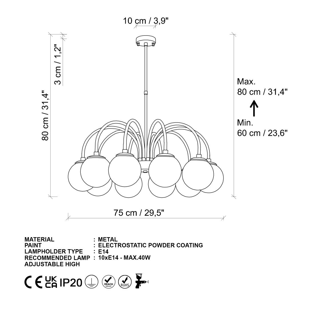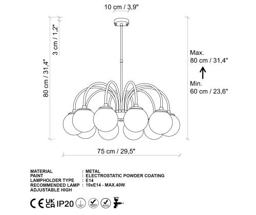 Socket Type: 10 x E 27 Max 40 W
