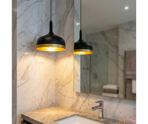 Crafted with a sturdy metal body, this chandelier exudes durability and strength. The sleek black finish adds a modern twist, while the gold accents bring a touch of glamour and opulence. The combination of these two colors creates a striking contrast that will instantly elevate the aesthetic of your space.
