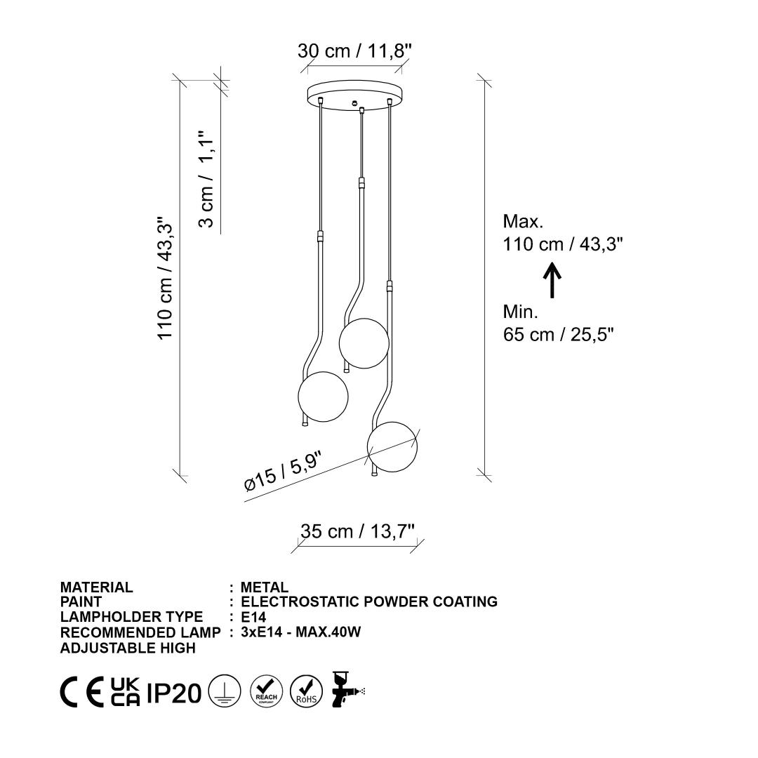 Socket Type: 3 x E 14 Max 40 W
