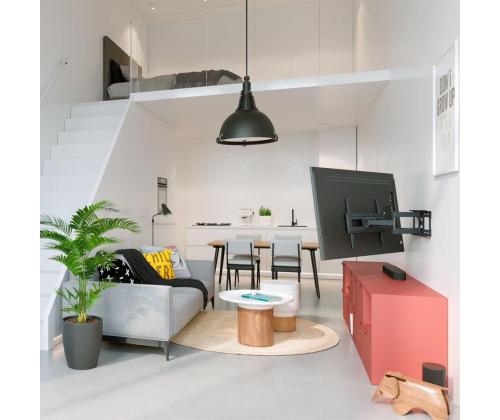 The Vogel’s MA 4040 full-motion TV wall mount offers a flexible viewing experience with up to 180° swivel and 10° tilt options. Designed for large TVs (40–77 inches) and supporting up to 35 kg, it includes high-quality installation accessories, such as fischer® plugs, for a secure and durable setup.