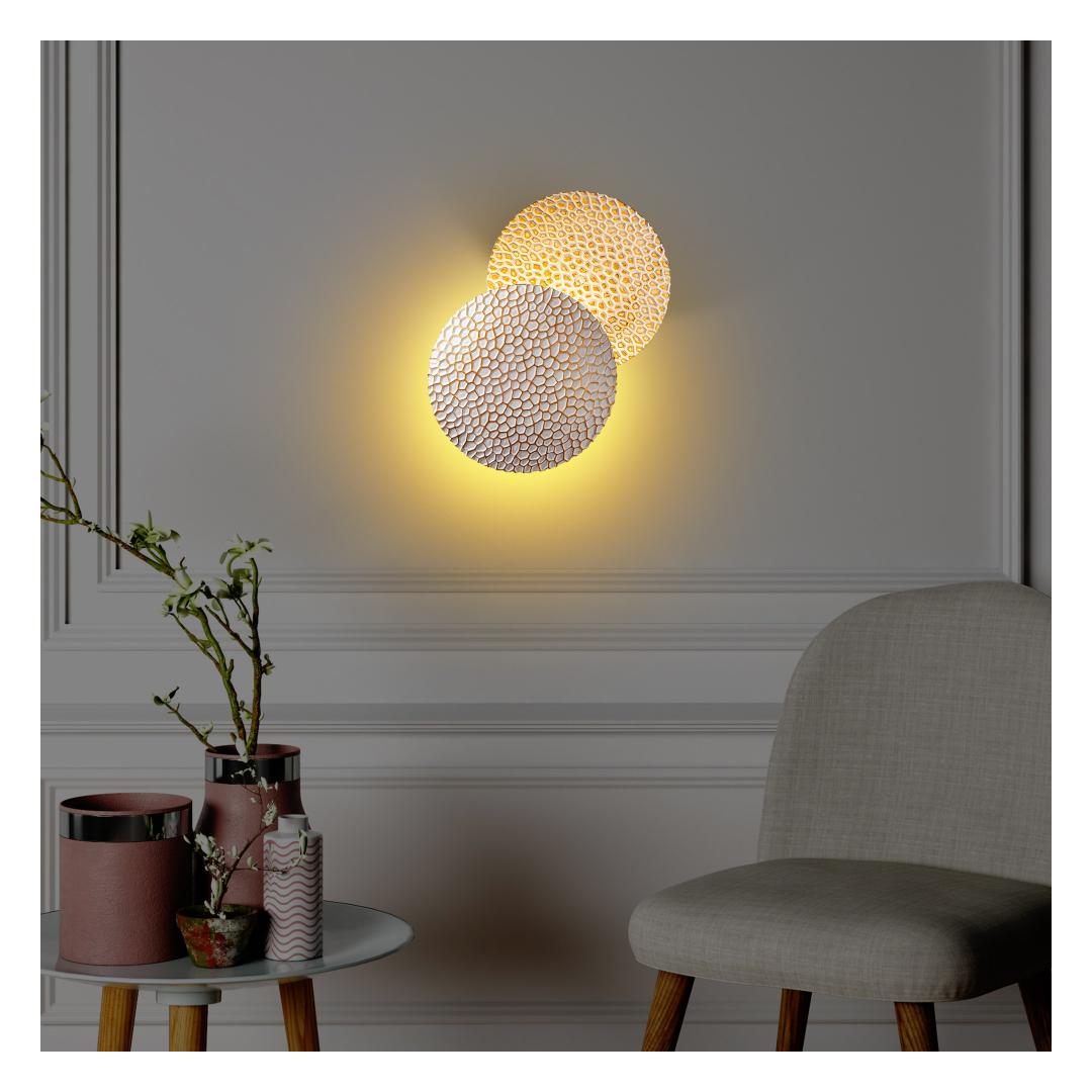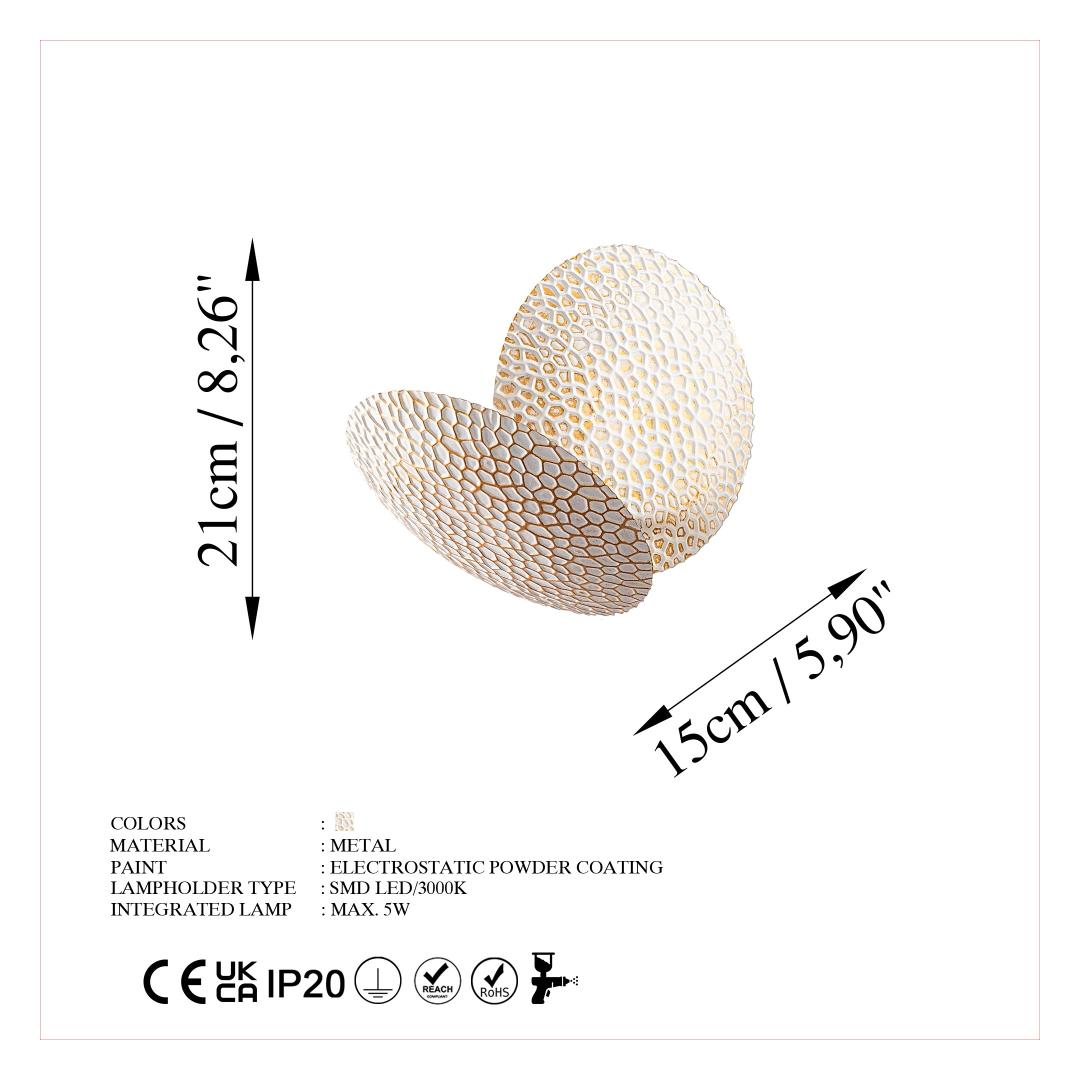 Tee tilastasi tyylikäs ja lämmin esittelemällä hienot seinävalaisimemme, jotka on suunniteltu lisäämään tyylikkyyttä ja charmia mihin tahansa huoneeseen. Metallirungosta valmistettu valaisin on kestävä ja siinä on ajatonta eleganssia. Sen metallinen pohjalevy takaa vakauden ja pitkäikäisyyden, mikä tekee siitä täydellisen lisän kotiisi tai toimistoosi. Luo viihtyisän ilmapiirinTämä lumoavasti muotoiltu seinävalaisin tekee tilastasi heti viihtyisän ja kutsuvan. Pehmeä valo, jota smd-led-valaisimen kanta säteilee, luo lämpimän ja rauhoittavan tunnelman, joka sopii täydellisesti rentoutumiseen pitkän päivän jälkeen tai vieraiden vastaanottamiseen. Esteettisesti miellyttävä ja monipuolinenValkoisen ja kullan yhdistelmä lisää runsautta ja hienostuneisuutta mihin tahansa sisustukseen. Olipa tyylisi sitten moderni, minimalistinen tai klassinen, vintage-teema, tämä seinävalaisin täydentää vaivattomasti mitä tahansa estetiikkaa, joten se on monipuolinen valinta mihin tahansa huoneeseen. Tekniset tiedot:Metallirunko takaa kestävyyden ja ajattoman tyylikkyydenMetallijalusta vakauden ja pitkäikäisyyden varmistamiseksiLeveys: 21 cm, Korkeus: 21 cm, Syvyys: 15 cmKannen halkaisija: 21 cm, Kannen korkeus: 2 cmHyllylevyn halkaisija: 10 cm, Pohjalevyn korkeus: 2 cmIP 20 -luokitus lisää turvallisuuttaLampun pistorasiatyyppi: SMD LedPistorasiatyyppi: LED 5WVäri: valkoinen ja kultaVahvista tilasi seinävalaisimellamme ja koe toiminnallisuuden ja tyylin täydellinen yhdistelmä. Älä missaa tätä tilaisuutta luoda lämmin ja kutsuva tunnelma kotiisi tai toimistoosi. Tilaa nyt ja anna tämän valaisimen eleganssin muuttaa tilasi. Väri: valkokulta