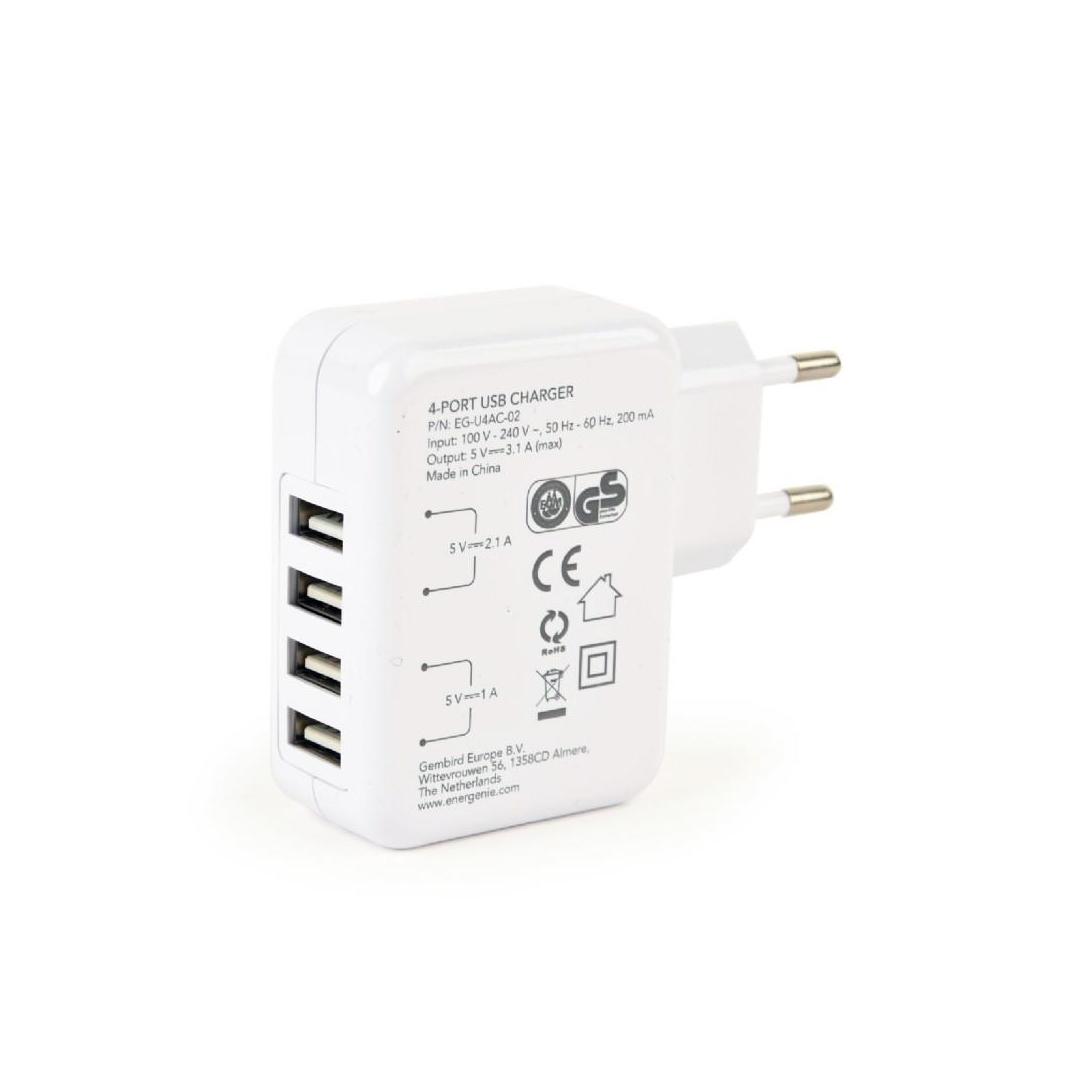CHARGER USB UNIVERSAL WHITE/4PORT EG-U4AC-02 GEMBIRD