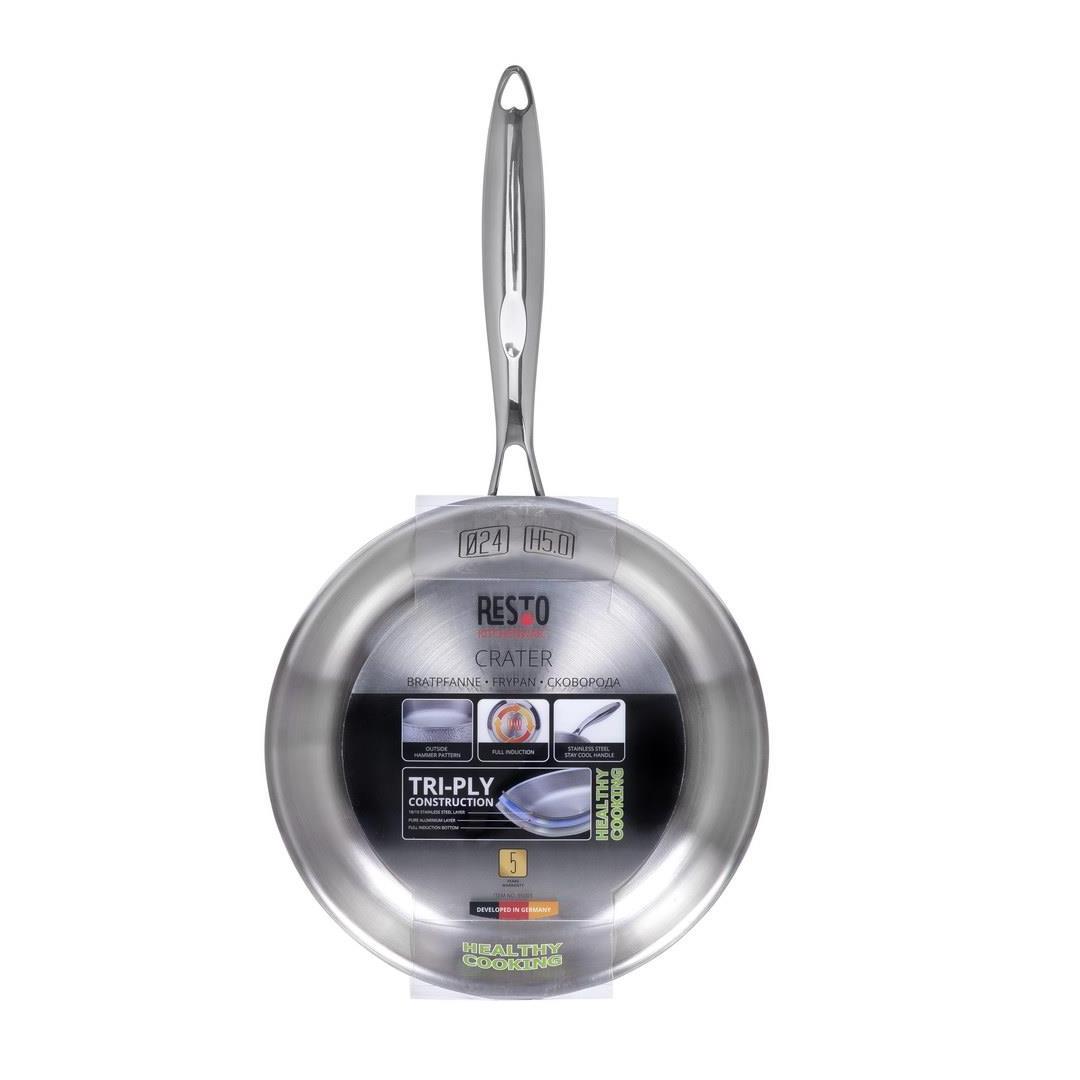 Frying pan D24, h=5.0cm TRI-PLY (18/10 stainless steel + aluminum + 18/10 stainless steel) Stainless steel cool handle Energy saving 25% Works on all heating surfaces, including induction Dishwasher safe Oven safe up to 220°? Frypan D24, h=5.0cm