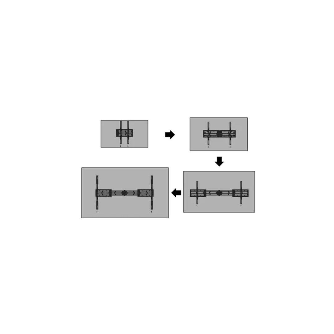 The WL30S-950BL19 has a depth of 6,5 cm and is, thanks to the included vertical extension brackets, suitable for screens that meet VESA hole pattern 100x100 to 1500x900 mm. Due to the unique extendable design, the mount can be adjusted to a wide range of screens dimensions; from 55" up to 110". It is possible to lock the mount using a padlock (not included).