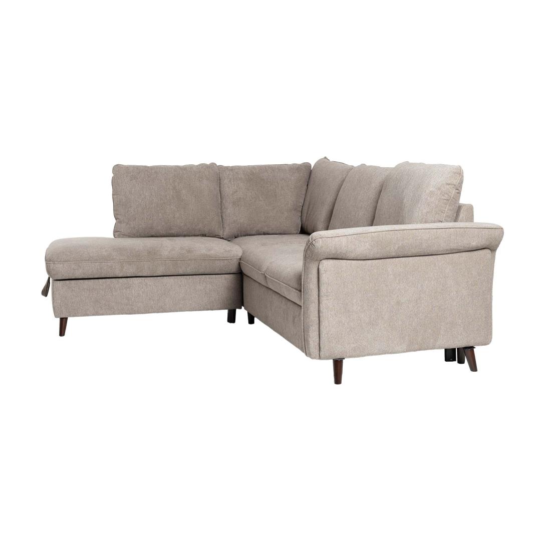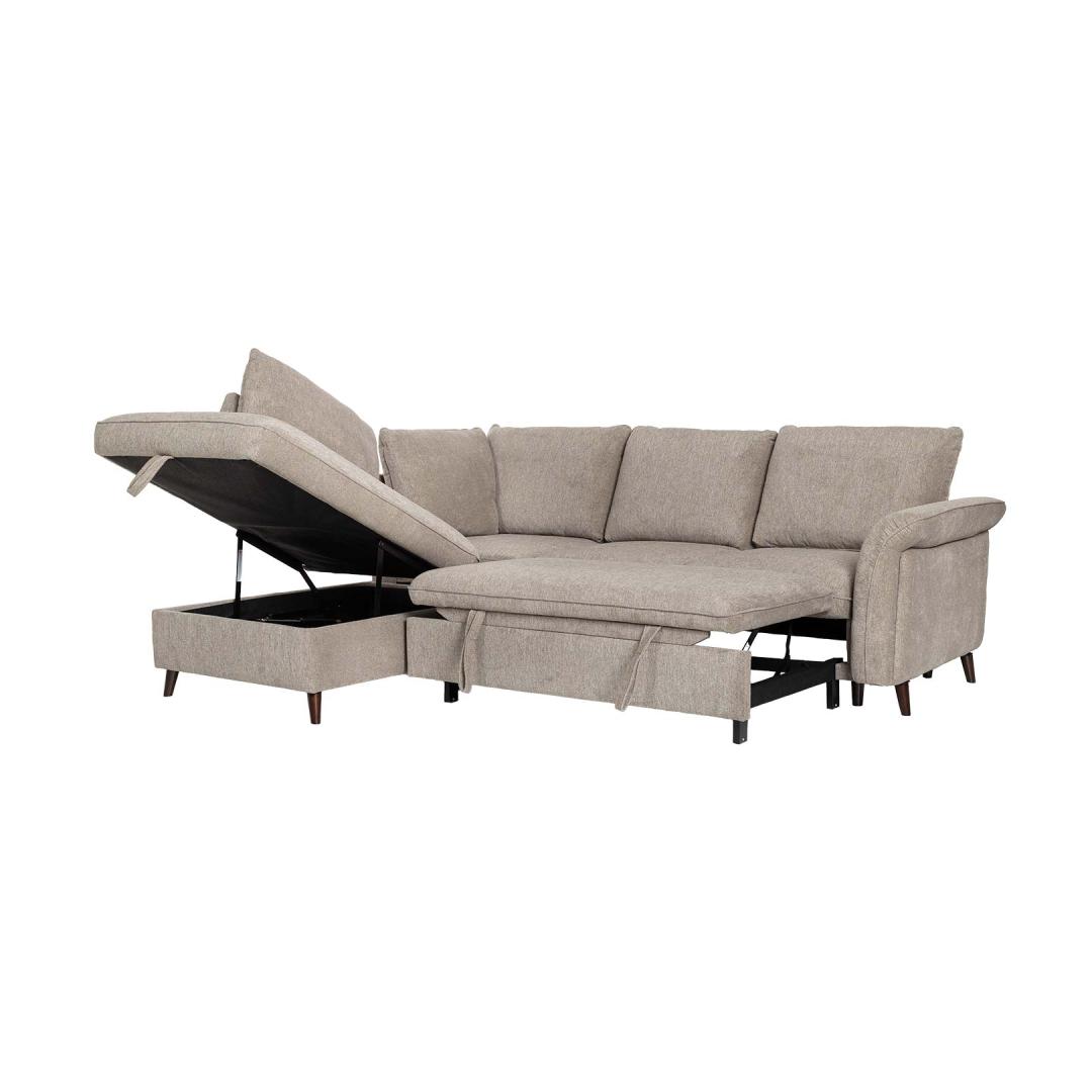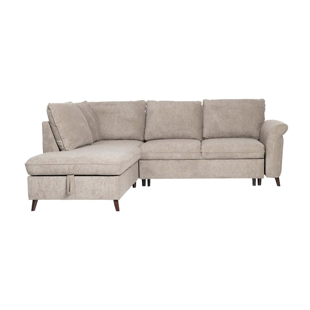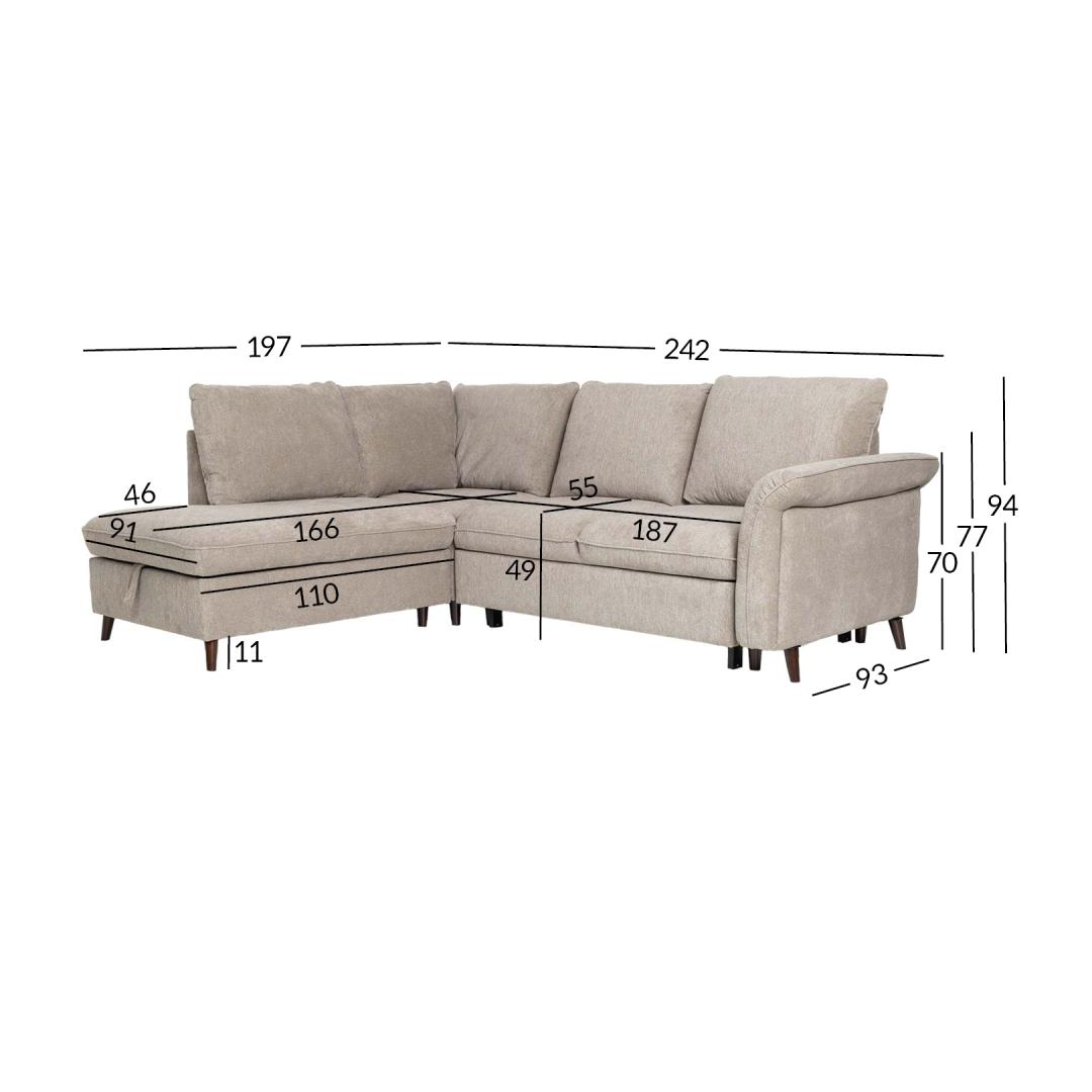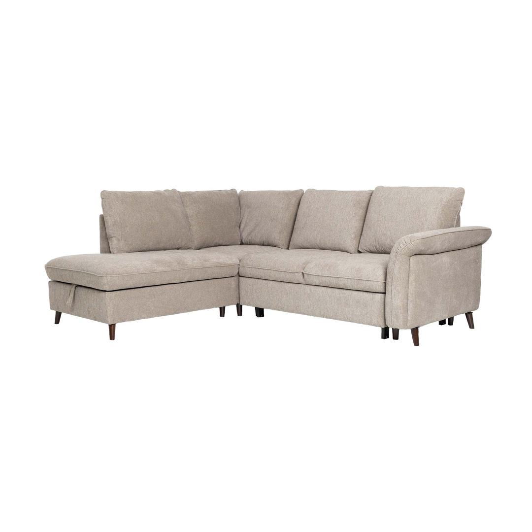 Diivanil on tumedad plastikust jalad H11cm. Nurgadiivanvoodi LINDY panipaigaga, vasak nurk, helepruun.