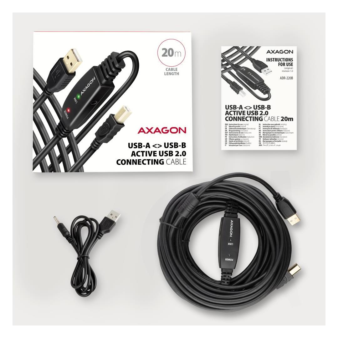 KAAPELI USB2.0 A-M/B-M AKTIIVINEN/20M ADR-220B AXAGON