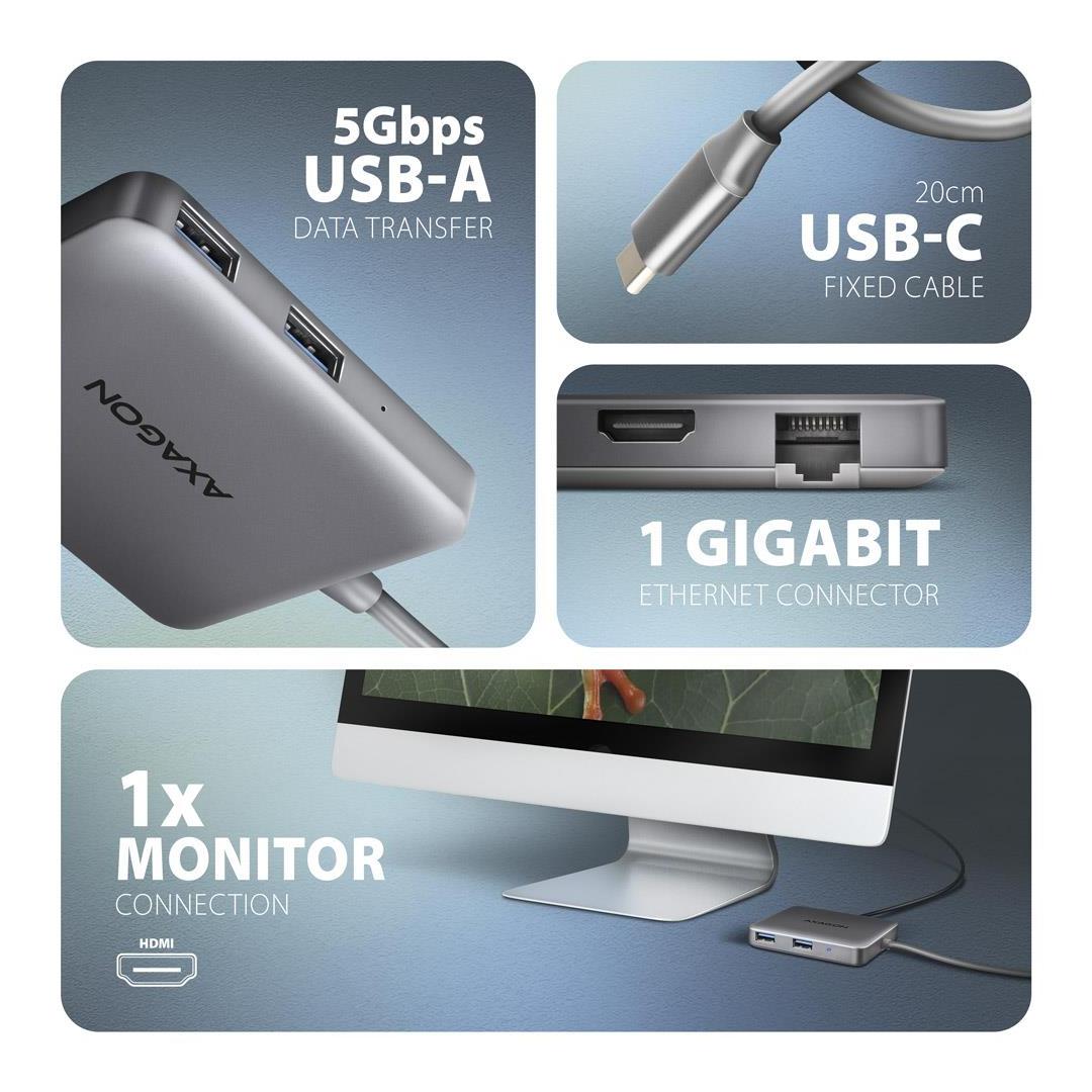 I/O HUB USB-C 5IN1 5GBPS/0.2M HMC-5HL AXAGON