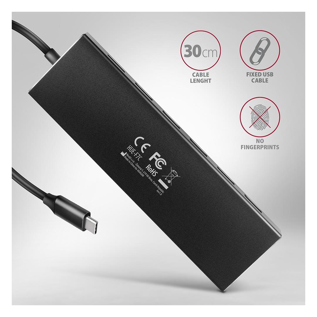 I/O-KESKITIN USB-C 7-PORTTINEN LITTEÄ/0.3M HUE-F7C AXAGON