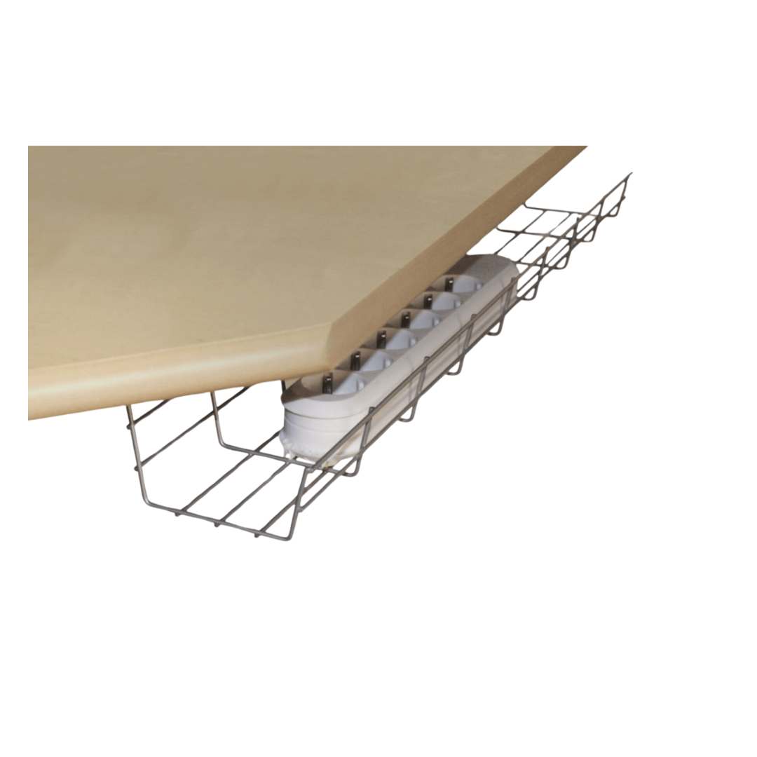 Piilotettu metalliputki suojaa kaapeleita vaurioilta ja vähentää kompastumisriskiä. Saatavana kolmessa värissä.