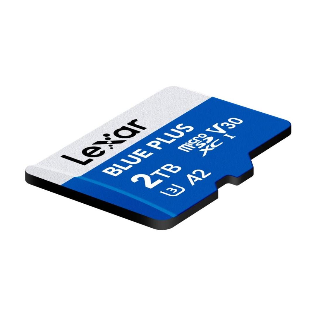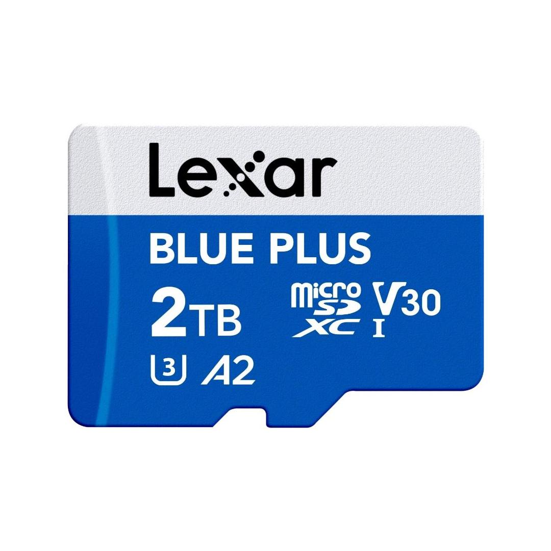 Lexar BLUE PLUS. Capacity: 2 TB, Flash card type: MicroSDXC, Internal memory type: UHS-I, Read speed: 170 MB/s, UHS Speed Class: Class 3 (U3), Video Speed Class: V30. Protection features: Drop proof, Magnet proof, Shock resistant, Temperature proof, Vibration proof, Waterproof, X-ray..., Product colour: Blue