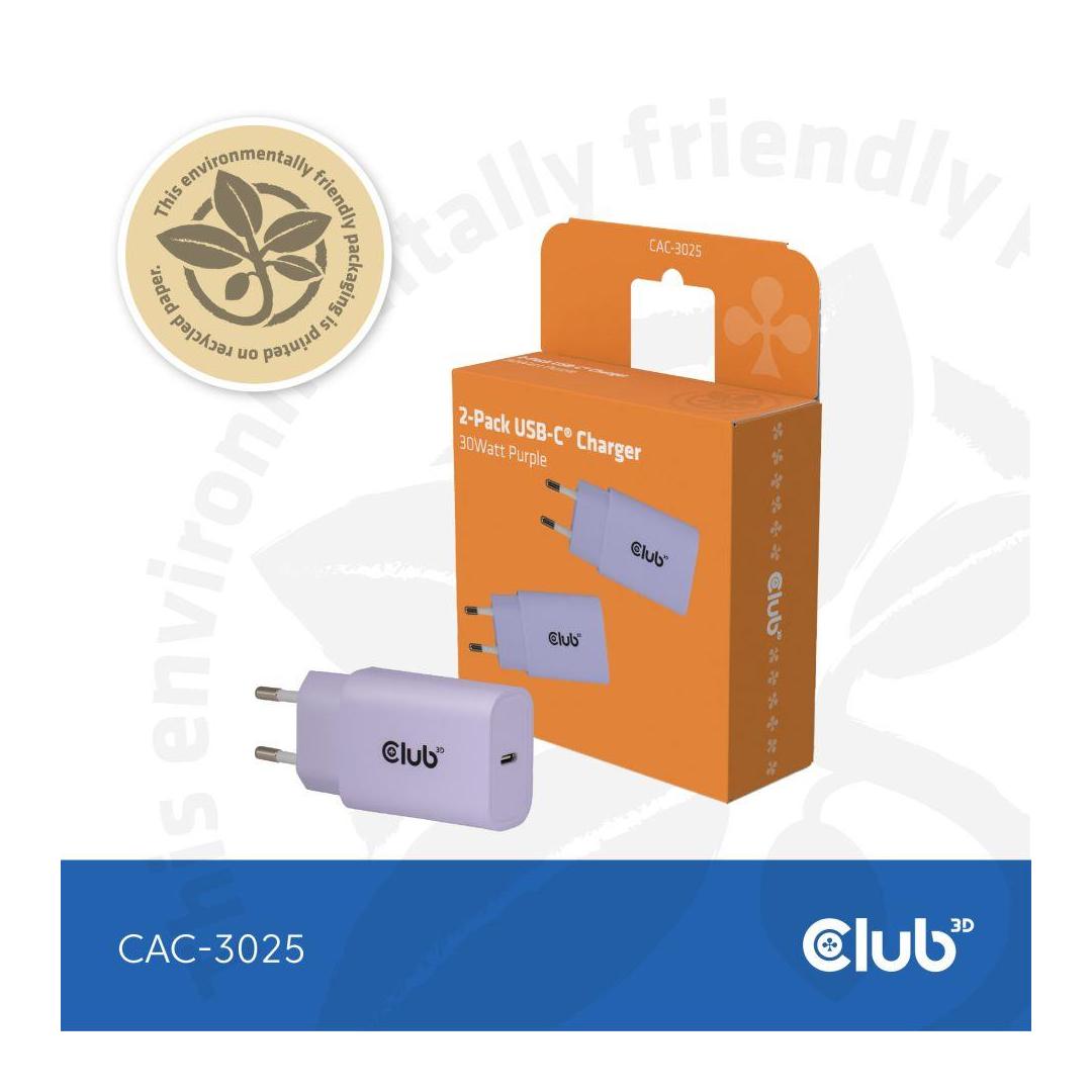 The Club 3D CAC-3025 is a 2-Pack USB-C Charger which provide 30Watt Power Delivery 15V/2A. This product is a high-performance travel charger with 30Watt output at most. Supports both iPhone and Android(with an USB-C® connector) It is compatible with various USB protocols (such as iPad, iPhone and other tablets and smart phones). Precise current-limiting output, overload protection and automatic restart after troubleshooting make the product safer and give you more peace of mind. Supports various Charge protocols (iPad, iPhone, Android, etc.) It is helpful for long-distance travel as well as convenient for business as they come in a 2-Pack version and different colors!