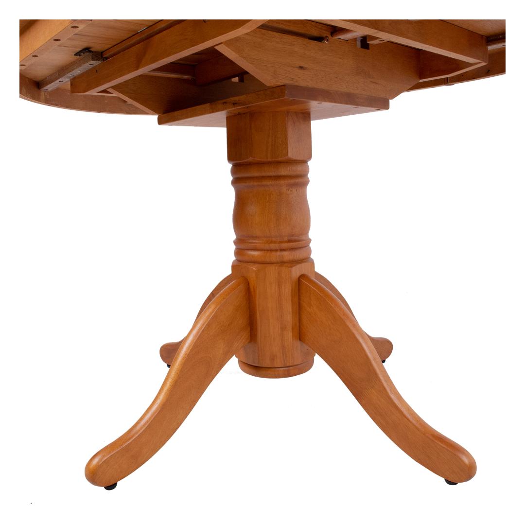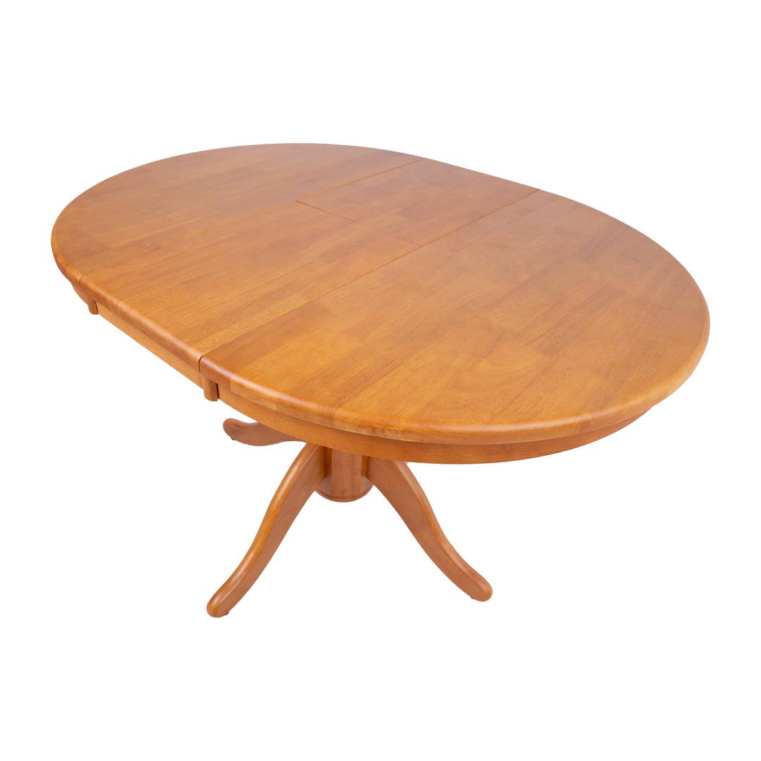Pöytä on valmistettu kumipuusta ja viimeistelty vaalealla tammilakalla.