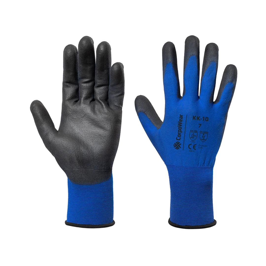Erittäin ohuet ja hengittävät nailonpäällysteiset työkäsineet KK10. Kosketusherkät, soveltuvat käytettäväksi kosketusnäytöillä. Ohuet, miellyttävät käsissä ja tarjoavat erinomaisen sormenpäiden herkkyyden. Kämmenet päällystetty PU:lla. Soveltuvat tarkkuutta vaativaan työhön. Saatavana koot 6-11. 12 paria pakkauksessa, 240 paria laatikossa.