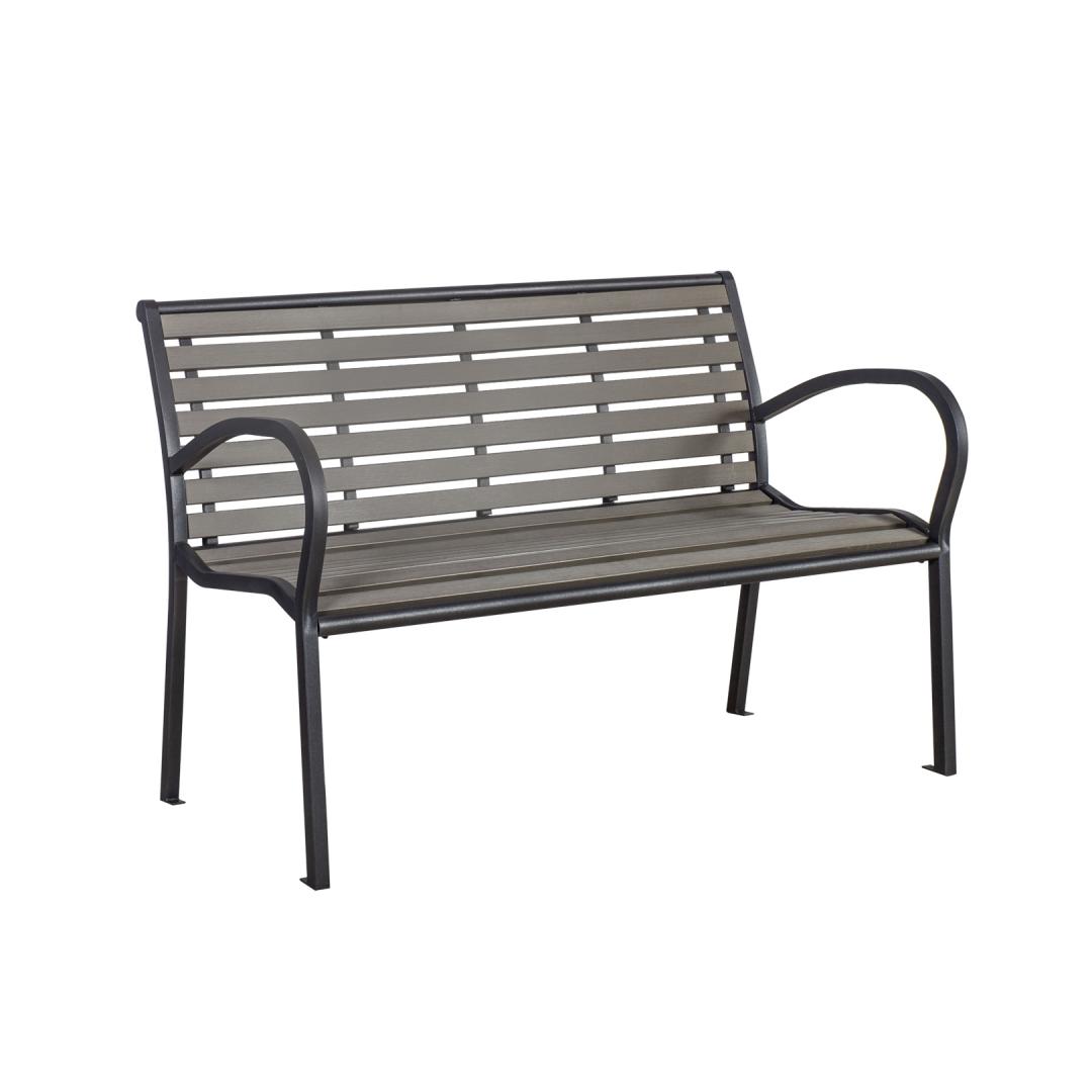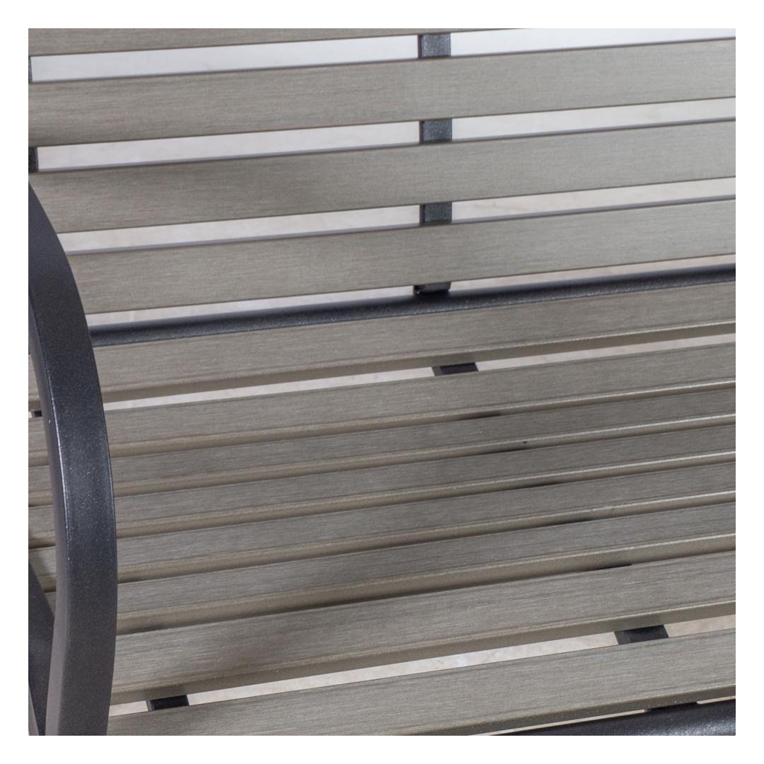 Vaaleanpunainen VIOLA 125x62xH80cm, harmaa. Penkin teräsrunko on viimeistelty tummanharmaalla pulverimaalilla, istuin ja selkänoja on päällystetty synteettisillä puuliuskoilla. Penkin istuinleveys on 119cm, istuimen syvyys 43cm, istuimen korkeus 45cm, selkänojan korkeus 41cm, käsinojan korkeus maasta 66,5cm. Painoraja 200kg. Tuote on erittäin kestävä vaihtelevissa sääolosuhteissa ja helppo huoltaa.