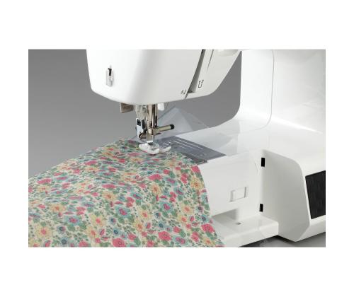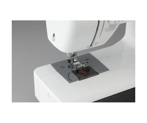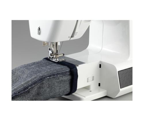 The Brother HF27 STRONG & TOUGH is a versatile, durable, and reliable sewing machine, especially suitable for sewing thick and sturdy fabrics. The machine features a metal needle plate and a presser foot with a fixator, allowing for easy stitching transitions from thinner to thicker areas. Additionally, the included Teflon foot is helpful for sewing materials like leather, plastic, vinyl, etc.
