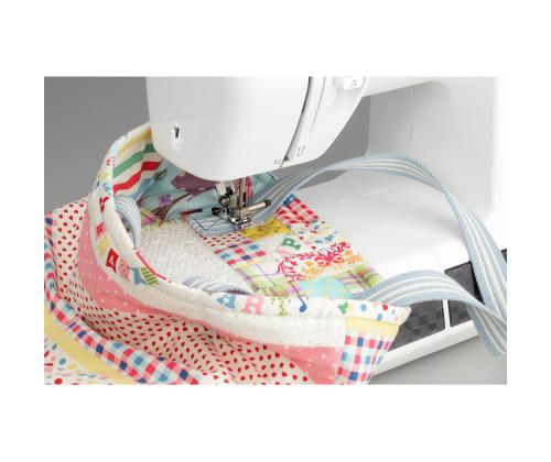 Brother HF27 STRONG & TOUGH on mitmekülgne,  vastupidav ja töökindel õmblusmasin, mis sobib eriti hästi paksude ja tugevate kangaste õmblemiseks. Masinal on metallist nõelaplaat ja fiksaatoriga presstald, mis võimaldab hõlpsalt õmmelda üleminekuid õhemalt paksemale kohale. Komplekti kuuluv teflontald on aga abiks naha, kile, vinüüli jms. õmblemisel.