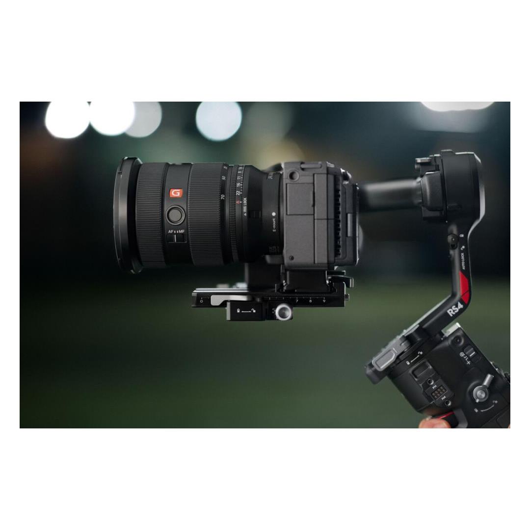The lower quick-release plate features a scale on both sides and a serrated slot design on the bottom. This complements the fine-tuning knob on the gimbal's tilt axis, allowing cinematographers to perform precise, millimeter-level adjustments when changing cameras or lenses. It also facilitates a swift transition between tripods and stabilizers for the camera.