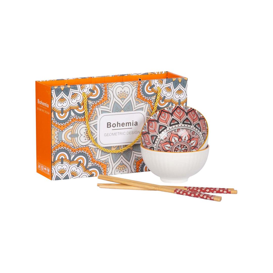 Setti BOHEMIA 2 kattilaa ja syömäpuikot, värikäs