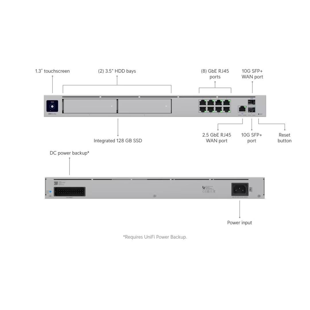 10G Cloud Gateway with 200+ UniFi device / 2,000+ client support, 5 Gbps IPS routing, and redundant NVR storage.