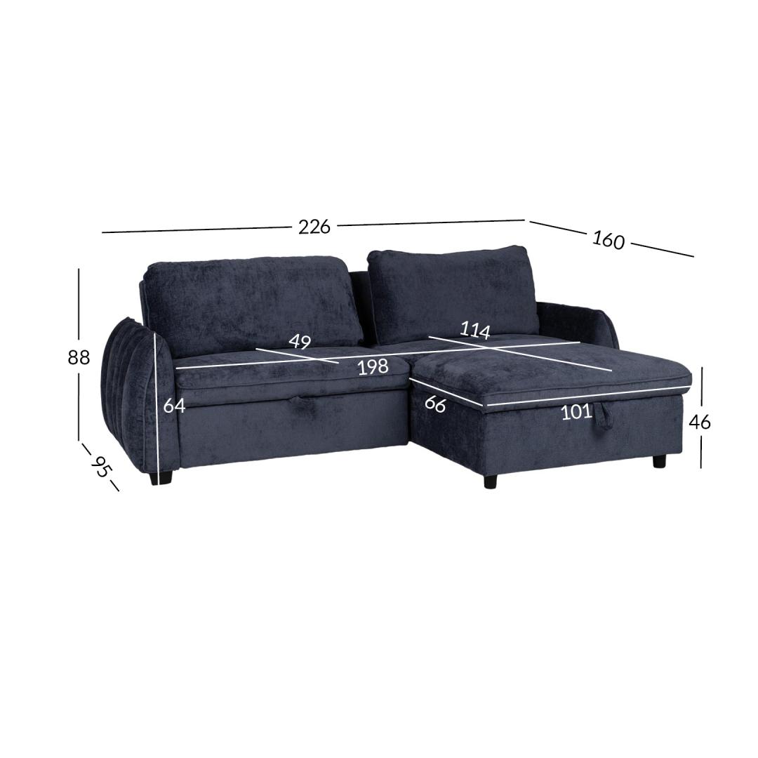 The overall dimensions of the sofa are 226x95/160x88cm. Seat width 198cm, seat depth 49(67)/114(132)cm. Seat height 46cm. Armrest height from the ground 64cm.